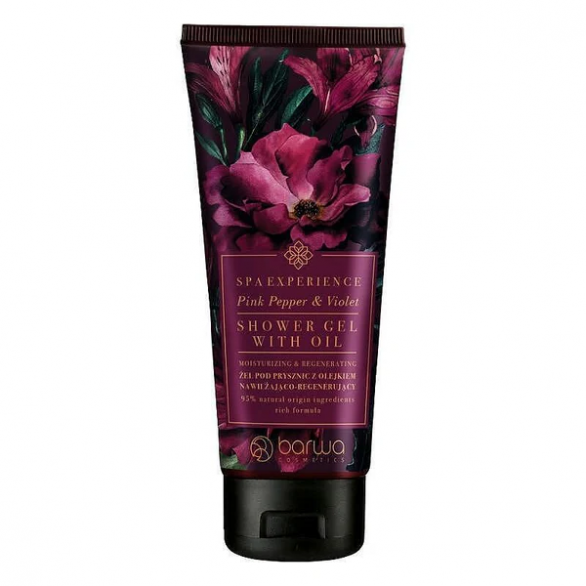 BARWA SPA EXPERIENCE Душ гел хидратиращ и регенериращ с натурални масла Розов пипер и Теменужки (200 мл) е продукт, който съчетава ефективно почистване с дълбока хидратация и подмладяване на кожата. Натуралните масла от розов пипер и теменужки имат многобройни ползи за кожата: