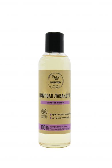 Шампоанът SOAPFACTORY BIO Лавандула е специално създаден за поддържане на чистота и здраве на скалпа. Със своите 100% натурални съставки, той комбинира българско лавандулово масло с антибактериално действие, което помага за регулиране на себума и предотвратяване на пърхот. Формулата му е обогатена с иланг-иланг, който придава свежест и баланс на косата и скалпа.